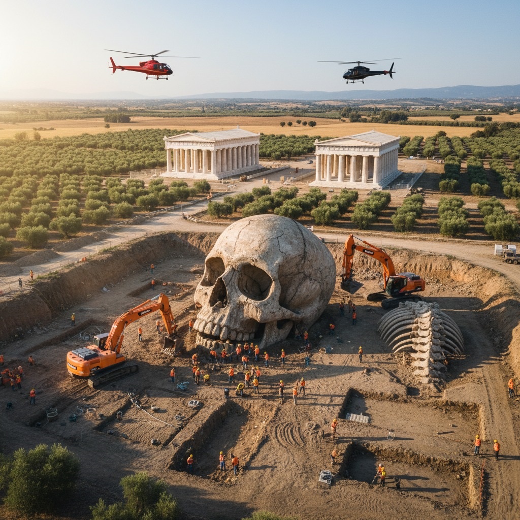 (Dion, Thessaly, Greece) – The serene foothills of Mount Olympus, long a cradle of ancient myths and human history, have once again delivered a revelation that promises to shake the foundations of archaeology and our understanding of the distant past. What began as a routine preliminary survey near the well-established archaeological park of Dion – a sacred city of the ancient Macedonians – has culminated in an unprecedented discovery: the unearthing of a colossal, clearly hominid-like skull and partial skeletal remains, of a scale previously thought impossible.