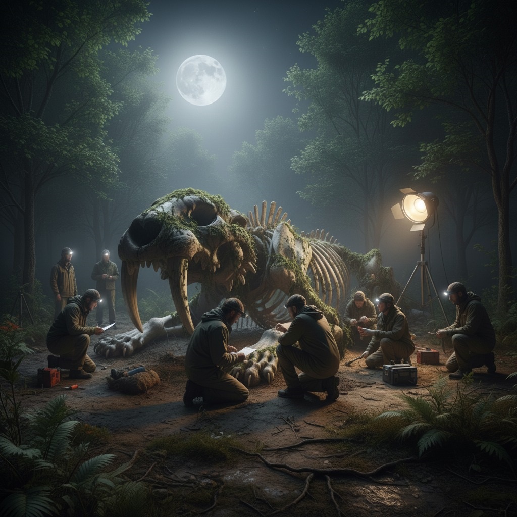 One moonlit night, as the team took a brief respite, the full skeleton lay exposed under the glow of their lamps and the silent, watchful eye of a full moon. The ribs arced gracefully, the massive limb bones, including gigantic paws with distinct phalanges, lay scattered around the central body. The bones themselves were deeply weathered, marked by millennia of exposure to the elements and the crushing embrace of the tar. Moss and ancient algae clung to crevices in the skull, a testament to its unfathomable age. It looked less like a fossil and more like a sleeping giant, waiting to awaken.