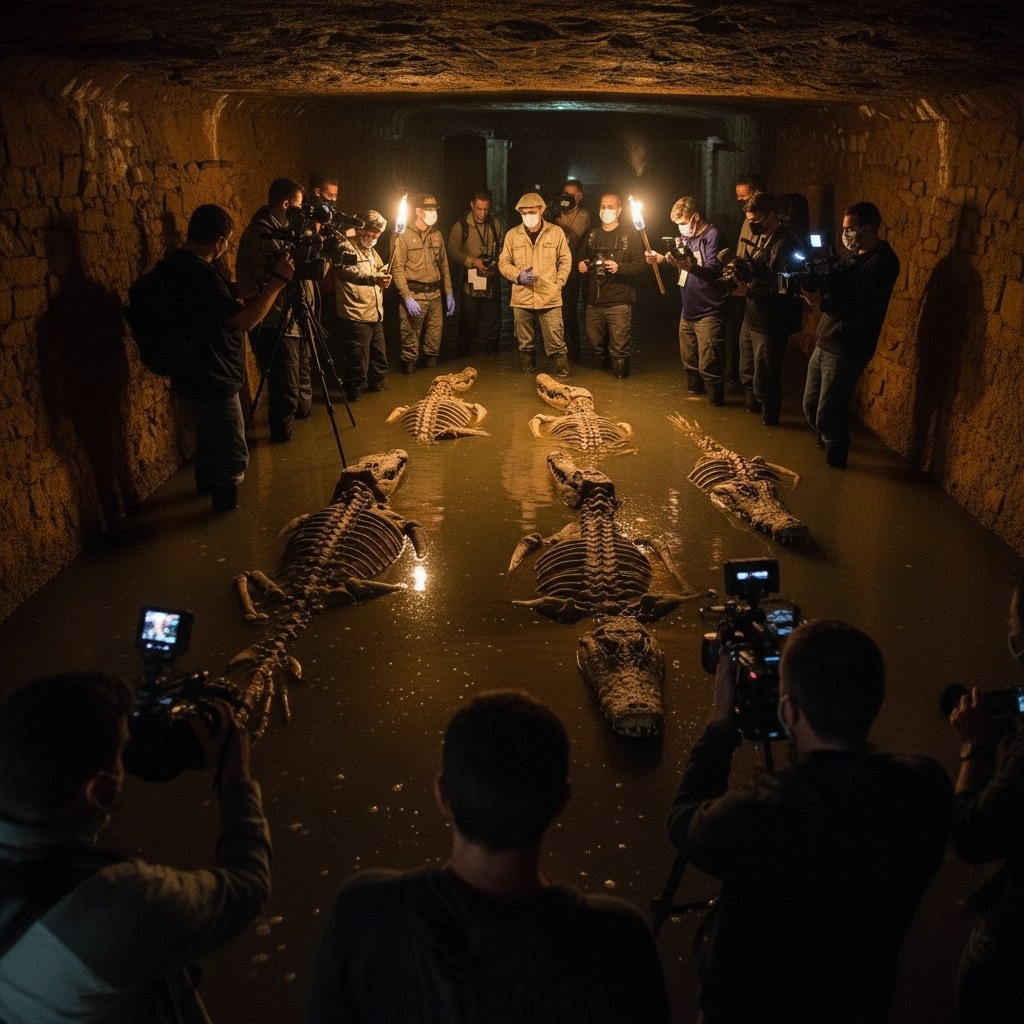 Their initial findings had been promising: fragments of pottery, faded hieroglyphs hinting at a hitherto unknown cult, perhaps dedicated to Sobek, the crocodile god. But nothing could have prepared them for what lay ahead. As they advanced further into the largest chamber, the light from their torches and the camera crews accompanying them danced upon a sight that stole their breath.