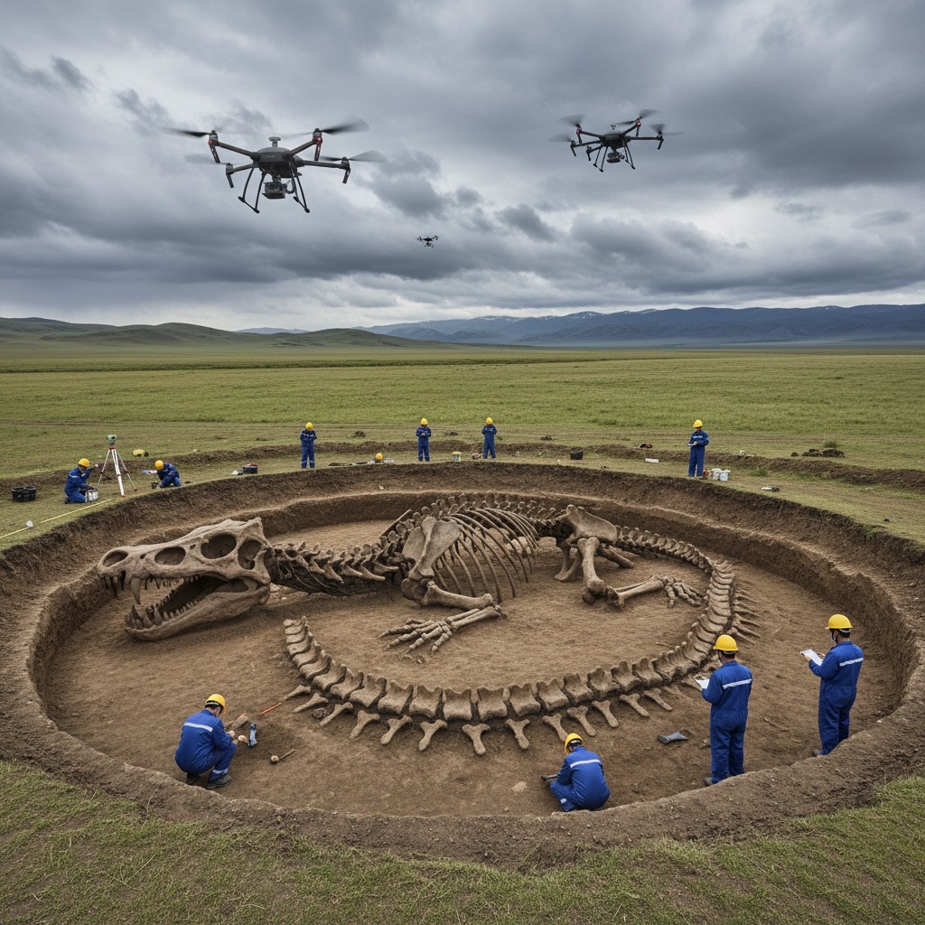 It began subtly, with satellite imagery anomalies over the remote Dornogovi Province – patterns too vast and too regular to be natural. Initial ground surveys confirmed it: a massive, circular depression, half-buried by centuries of sand and grass. What they uncovered next sent tremors through the global paleontological community.
