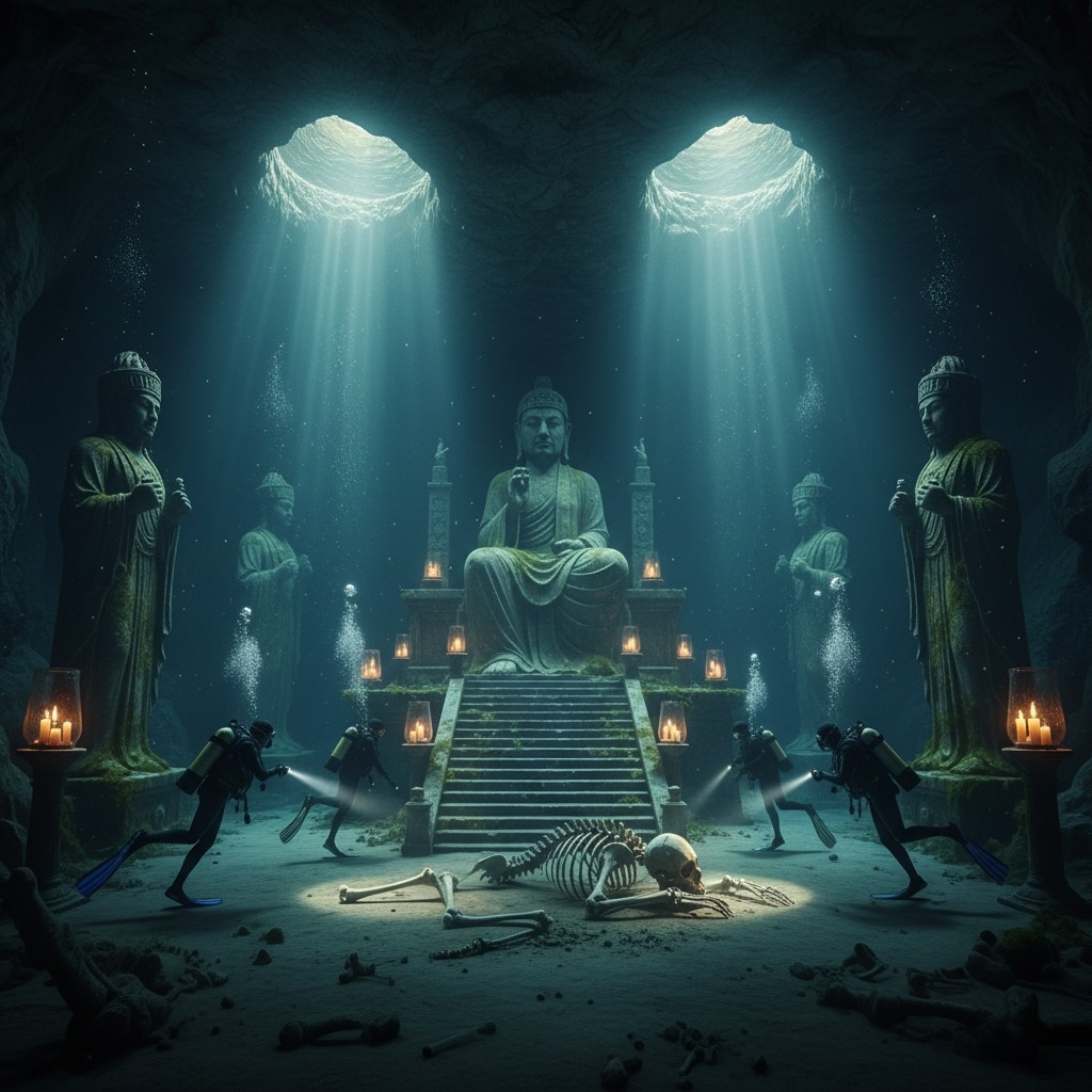 For the next several hours, the team meticulously documented their find. They mapped the cavern, took countless photos, and began preliminary analyses of the water and the strange glowing orbs, which emitted a faint, unidentifiable energy signature. The central skeleton, they deduced, was not merely a fossil but seemed to have been placed there deliberately, perhaps even ritually adorned before the temple’s eventual submersion.
