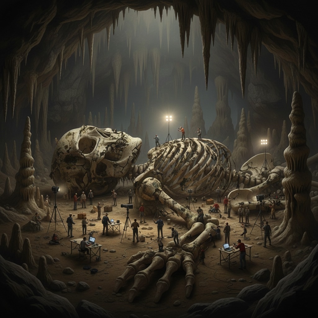 The skeleton was heavily weathered, its surface etched with the passage of millennia. Patches of calcified rock clung to its massive frame, suggesting it had lain undisturbed for an epoch. The team immediately sprang into action. Cameras were deployed on tripods, their flashes momentarily bathing the scene in stark light. LIDAR scanners began mapping the cavern’s every contour, while drones buzzed softly overhead, capturing aerial perspectives of the monumental find. Dr. Thorne, a man usually composed, moved with a frantic urgency, meticulously examining the bone structure. He noted faint, intricate carvings on the proximal end of a tibia, patterns reminiscent of early Neolithic motifs found at Göbekli Tepe itself.
