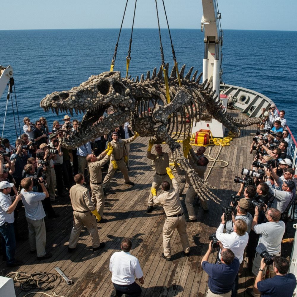 As the final chains were unhooked and the fossil gently lowered onto the deck, the team erupted into applause. For a moment, under the vast Pacific sky, it seemed as though time itself had folded, connecting the primordial past with the present. The Leviathan had returned—not to rule the seas, but to rewrite them.