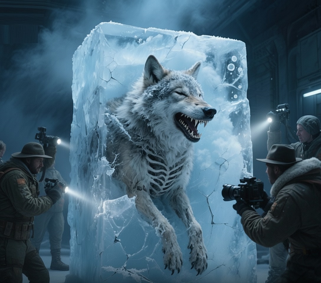 Frozen solid, trapped within a crystalline sarcophagus of ice, was a wolf. But this was no ordinary wolf. Its size was immense, its fur still thick and surprisingly intact, and its features, though distorted by a snarl of primal ferocity, spoke of an ancient lineage. Its ribcage was eerily visible through patches where ice had subtly sculpted its form, a stark reminder of its long slumber. The powerful jaws were agape, revealing teeth honed by millennia of survival in a lost world.