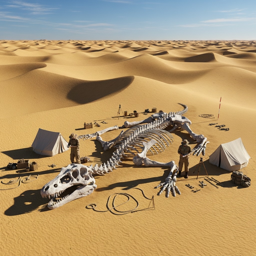 Sahara Sands Yield Colossal Ancient Predator: Explorers Unearth Unprecedented Skeleton in Ténéré Desert