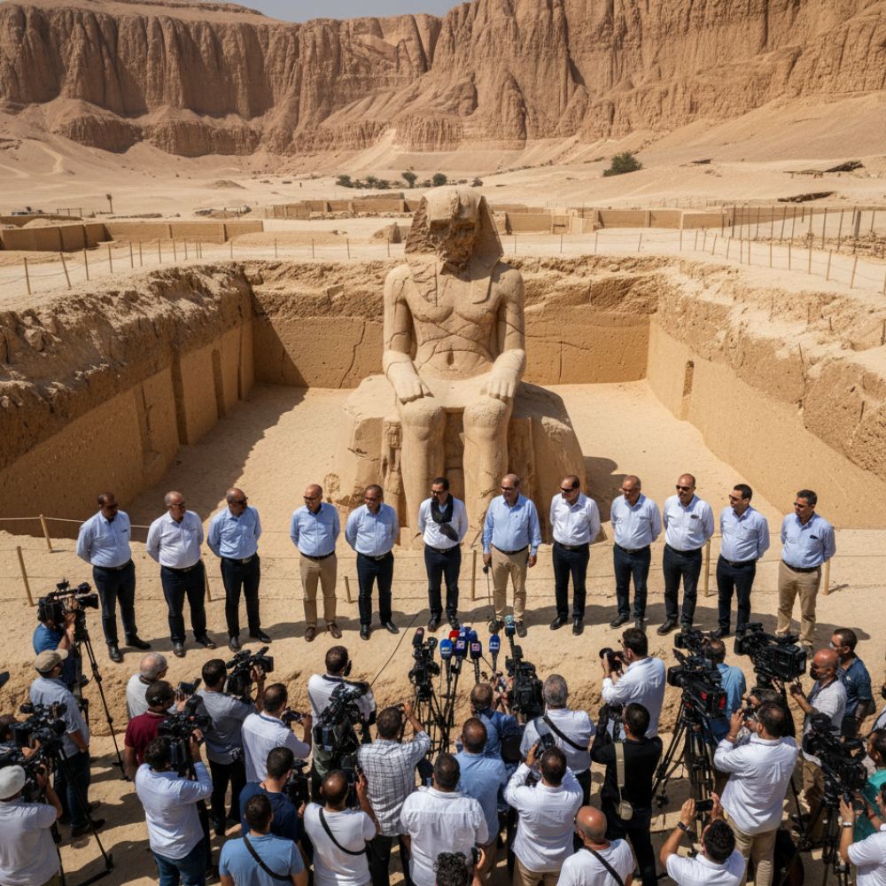 As the cameras flashed and questions rained down, a sense of profound wonder settled over the site. Here, amidst the barren grandeur of Luxor, a giant from a bygone age had been reawakened, ready to share its stories with a new generation. The sands of time, which had once buried it, now revealed its secrets, ensuring that the legacy of this colossal pharaoh would once again stand tall under the eternal Egyptian sky.