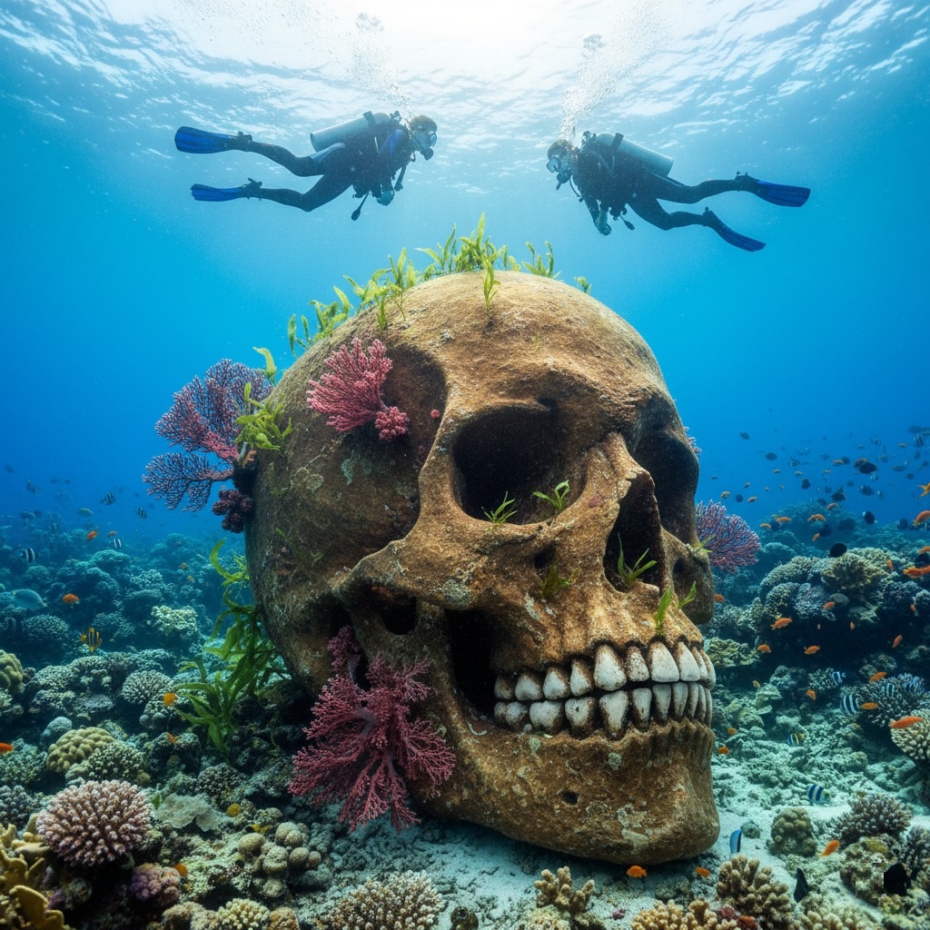Over the next few weeks, the site became their obsession. Under strict archaeological protocols, they began their survey. Sonar scans revealed no immediate attached structures, suggesting the skull was either a standalone monument or part of a larger, deeply buried ruin. Carbon dating samples, carefully extracted from the coral growing on its surface, pointed to an astonishing age – thousands of years, pushing the boundaries of known human habitation in the region.