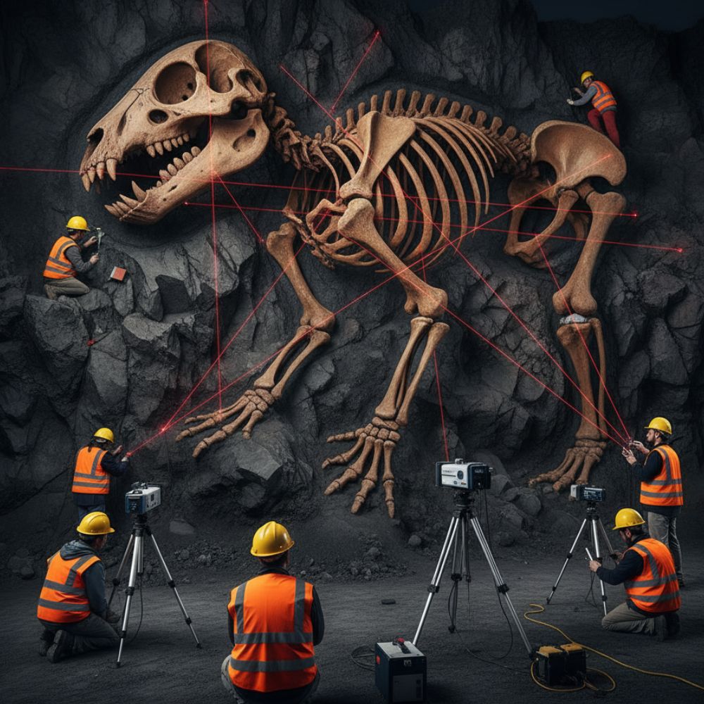 Red laser grids, like luminous spiderwebs, crisscrossed the colossal skeleton. These weren’t mere measuring devices; they were sophisticated 3D lidar scanners, meticulously mapping every contour of the fossil in millimeter precision. Dr. Thorne himself was crouched near the base, adjusting the focus on one of the scanning tripods, his face illuminated by its faint operational lights. Lena, nimble despite the heavy gear, was higher up on the rock face, gently brushing away millennia of compacted sediment from a colossal rib bone.