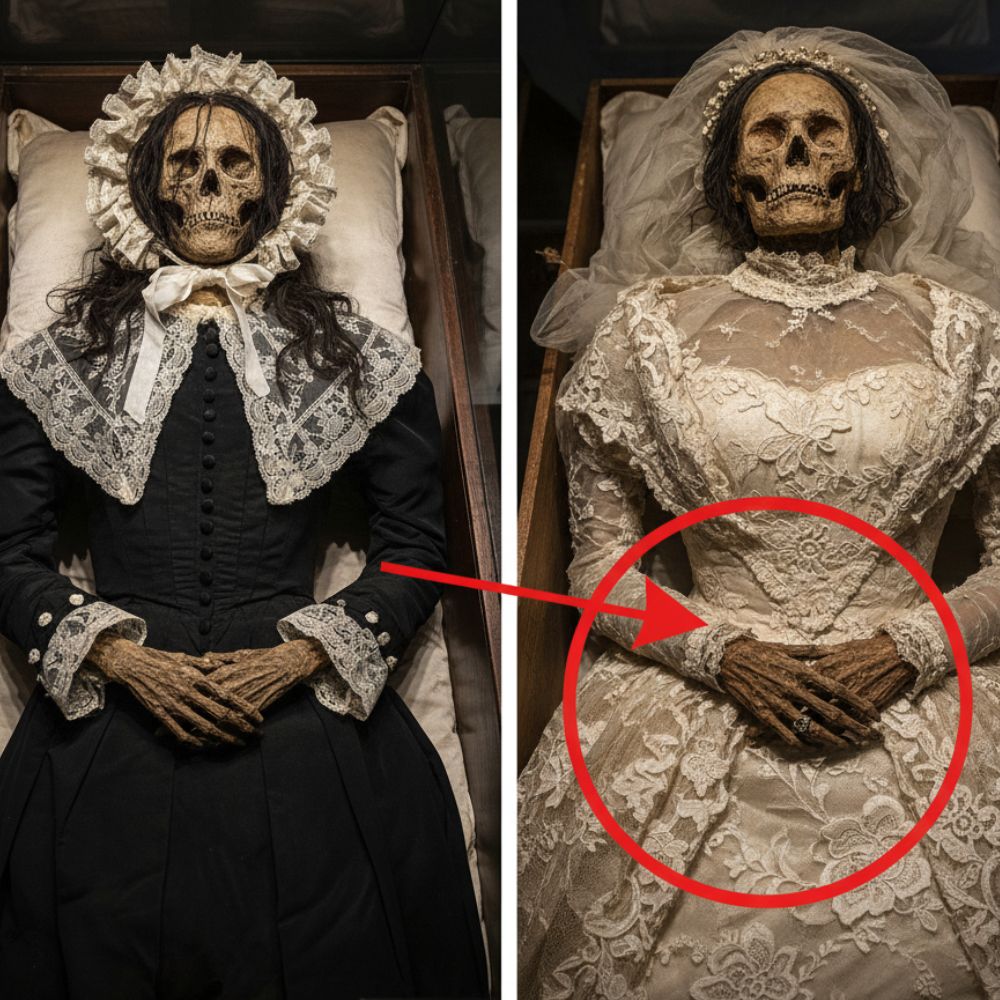 Then there was the “Novia Blanca” – The White Bride. Her discovery was even more striking. Unlike the stark simplicity of the Lady in Black, the Novia Blanca lay in a delicate, cream-colored lace bridal gown, its intricate patterns still discernible despite the passage of decades. A thin, delicate veil, now brittle with age, partially covered her mummified skull. What truly captured the imagination of onlookers, however, were her hands, clasped gently over her chest. On one finger, a slender ring, perhaps her wedding band, remained steadfast, a tiny, glittering promise unbroken by death. Archaeologists and historians studying the collection theorized she might have died shortly after her wedding or perhaps was buried in her most cherished attire, symbolic of eternal love.