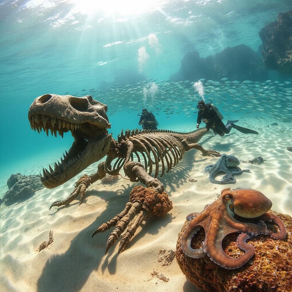 The skeleton, easily seventy feet long, bore a striking resemblance to a terrestrial theropod, but with adaptations for a marine existence. Its limbs were subtly flattened, suggesting powerful paddles, and its ribs were unusually dense, perhaps to resist pressure. Strange, bioluminescent corals had begun to colonize parts of its ancient frame, pulsating with soft, otherworldly light.
