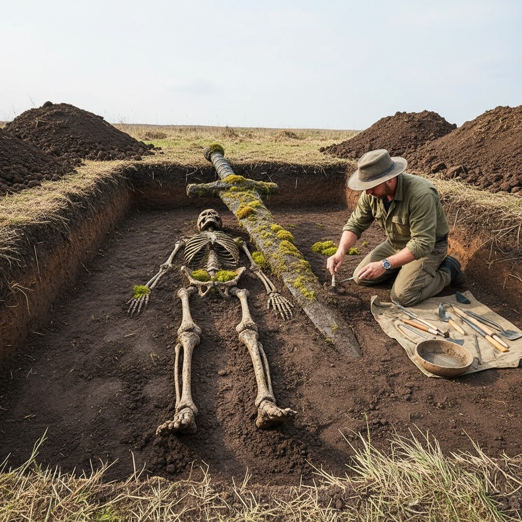 Alistair knelt beside her, his heart beginning to quicken. The dark earth, disturbed for millennia, began to reveal its secrets. What emerged, slowly and painstakingly, was a burial pit unlike any he had ever encountered in Britain. Within it, perfectly preserved by the anaerobic conditions, lay the skeletal remains of a man. His stature, even in death, suggested immense height, a warrior perhaps, or a chieftain of legendary proportions.