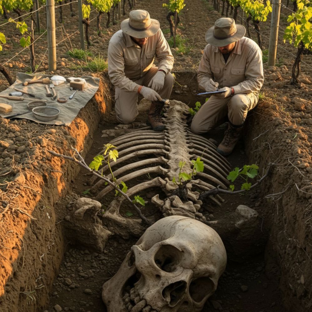 A trench, roughly dug by a bewildered farmhand just days prior, had revealed the unmistakable curve of human bone. Now, the excavation was precise, methodical. Elena’s protégé, Marco, carefully brushed away the last vestiges of earth from a weathered skull, its empty eye sockets staring up at the impossibly blue sky. The skeleton lay remarkably preserved, almost complete, the ribs like an ancient, fragile cage. Intriguingly, delicate tendrils of young grapevine had already begun to intertwine with the vertebrae, a silent testament to the centuries of growth above.
