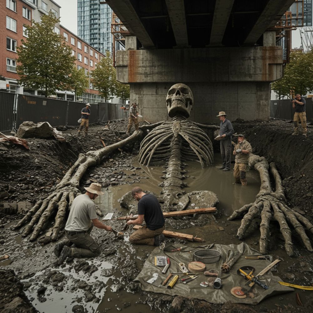 Rotterdam’s Subterranean Secret: Giant Skeleton Unearthed Beneath Erasmus Bridge