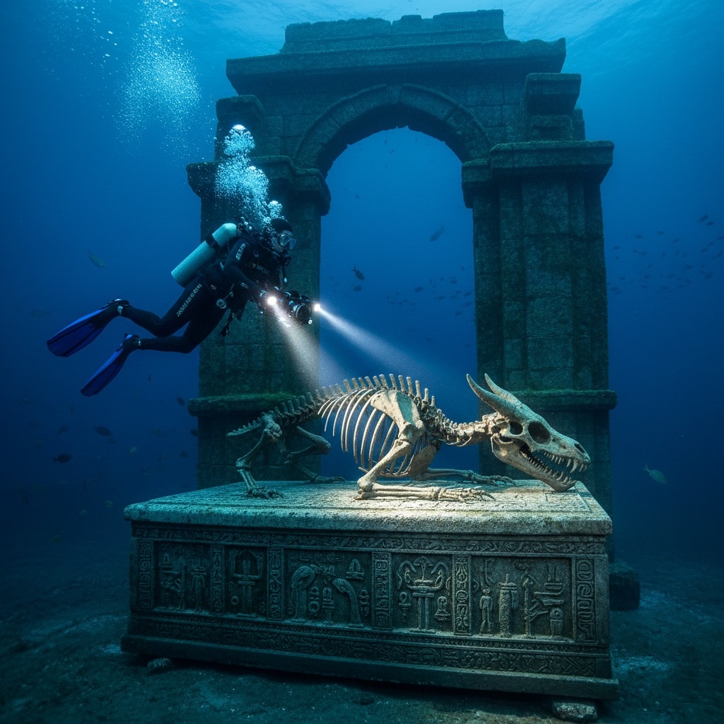 Beneath the arch, a colossal sarcophagus, intricately carved with hieroglyphs unlike any Aris had ever cataloged, lay on the seabed. It was immense, a monumental testament to a forgotten craft. But it wasn’t the sarcophagus itself that stole their breath; it was what rested upon it.