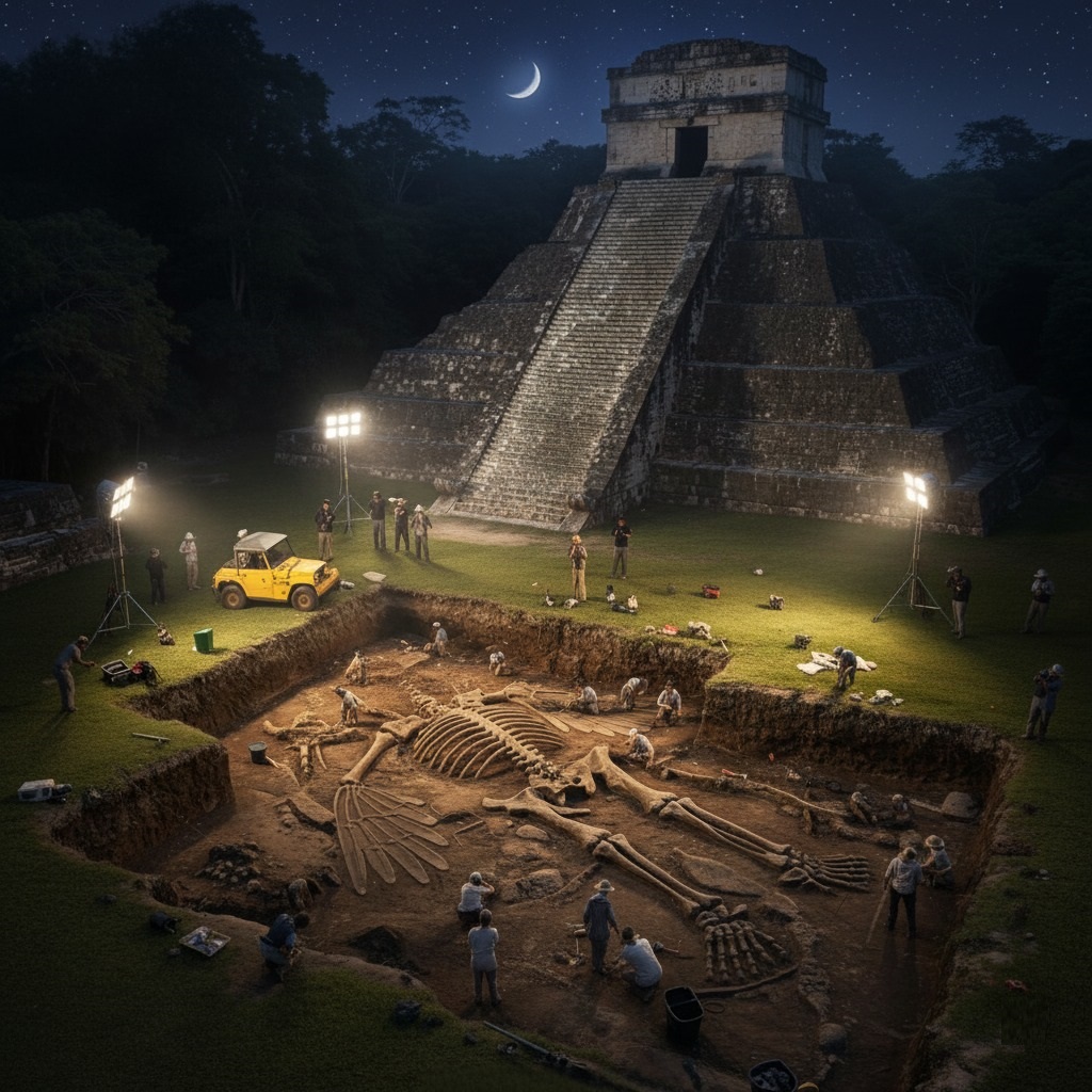 Dr. Aris Thorne, a seasoned archaeologist known for his unconventional theories, wiped sweat from his brow, his face illuminated by the harsh glow of industrial floodlights. For weeks, his team had been painstakingly excavating a newly discovered anomaly just west of the Temple of the Inscriptions, a place thought to have yielded all its major secrets. What began as an unusual seismic reading had led them to this moment.