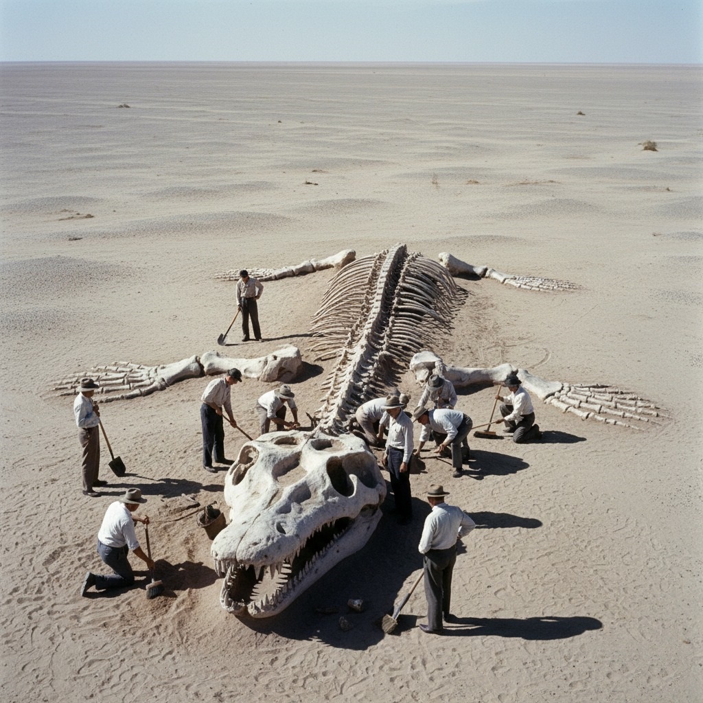 “Careful with that brush, Elena!” Alistair called out, his voice a dry rasp in the still air. Around him, a dozen figures moved with a synchronized, almost reverent rhythm. Each swing of a pickaxe, each gentle sweep of a brush, was performed with the precision of a surgeon. Below them, a leviathan was slowly emerging from its sandy tomb.