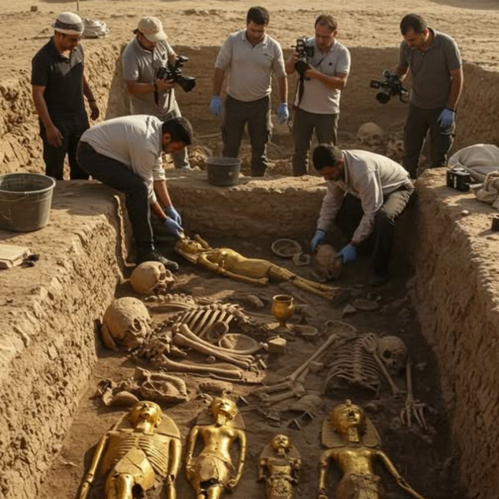 The careful work continued into the night, under portable floodlights. Each bone, each golden glimmer, was meticulously cataloged, photographed, and prepared for removal. The discovery in Saqqara promised to rewrite pages of Egyptian history, shedding new light on funerary practices, social structures, and the enduring power of gold in the afterlife. As the first golden sarcophagus was carefully lifted from the earth, protected by layers of foam and canvas, the desert air seemed to hold its breath. Saqqara had given up another of its majestic secrets, reminding the world of the endless wonders hidden beneath its ancient sands.