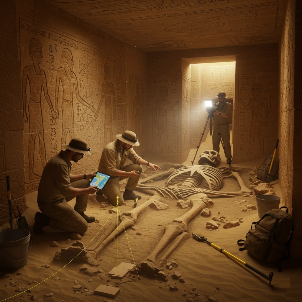 Alistair nodded, his gaze sweeping the room. The skeleton was large, unusually so, suggesting a robust individual. The surrounding sand was marked with faint, almost imperceptible lines – the ghost of ancient tools, perhaps, or even a burial shroud long since disintegrated. They immediately began their detailed documentation. Digital tablets flashed, capturing precise GPS coordinates and generating 3D models of the find. Cameras clicked, preserving every angle of the scene. One of the junior archaeologists, Ben, meticulously photographed the hieroglyphs on the wall nearest the skeleton. He noted a cartouche, partially obscured, that hinted at a familiar, yet enigmatic, royal name.