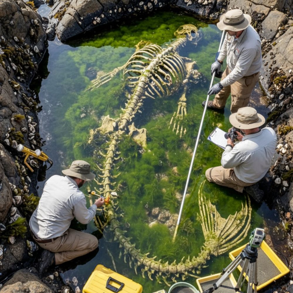 The team sprang into action with a disciplined precision that belied their stunned awe. Dr. Vance, carefully wading into the pool, began the meticulous process of scale measurement and photographic documentation. Dr. Ben Carter, the team’s osteologist, knelt by the water’s edge, his face a mask of intense concentration as he examined the bone structure, noting the peculiar density and surprisingly well-preserved cartilage remnants. The bright yellow waterproof cases were opened, revealing trowels, brushes, and sampling kits, usually reserved for burial mounds or shipwreck sites, now deployed for something far more extraordinary.