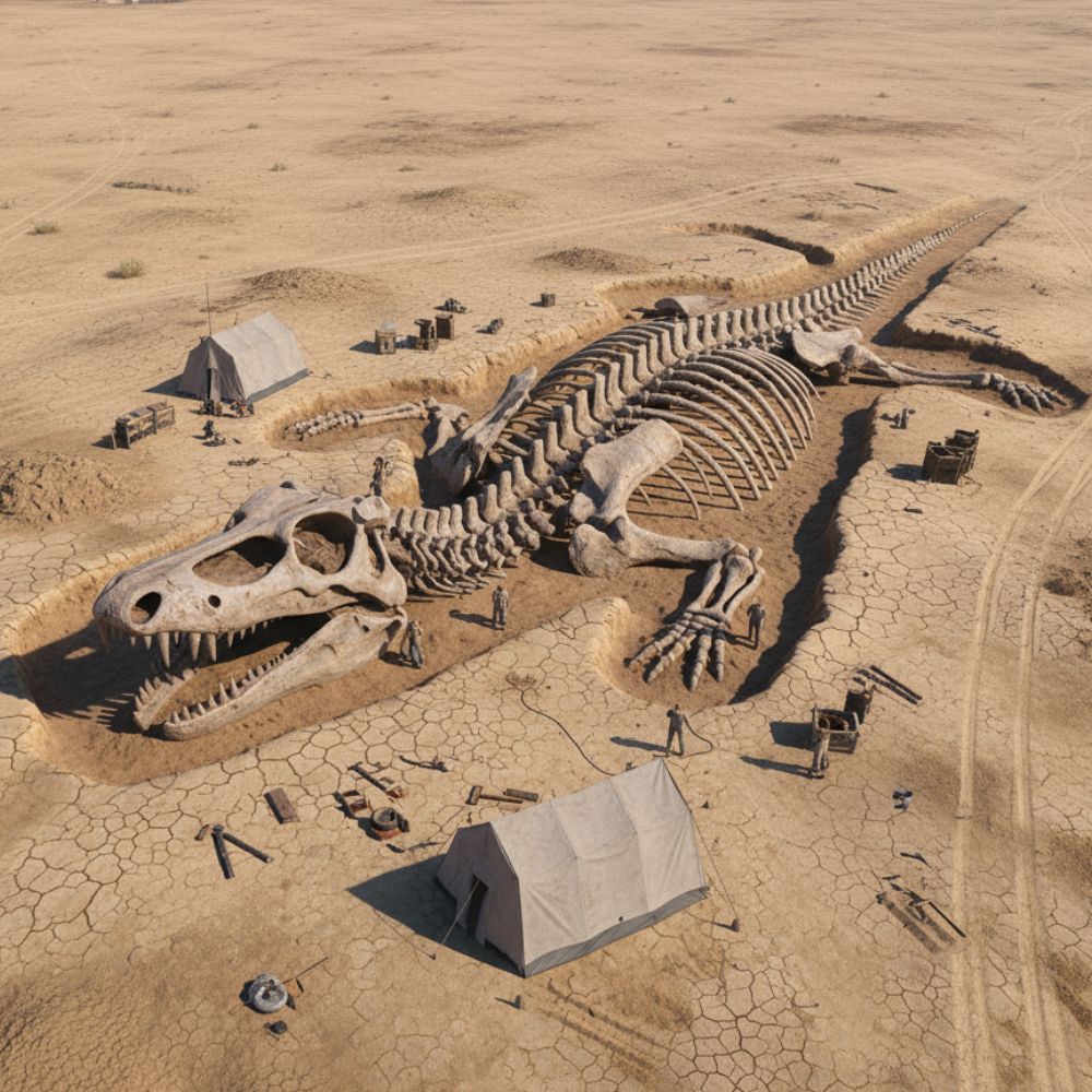 Their current endeavor dwarfed all previous undertakings. It began with a faint anomaly on the satellite imagery – a curious, serpentine ridge barely visible against the cracked, parched earth. Now, after three grueling months, what lay before them was nothing short of miraculous: the near-complete fossilized skeleton of an enormous prehistoric predator, nestled in its stony tomb like a sleeping leviathan.