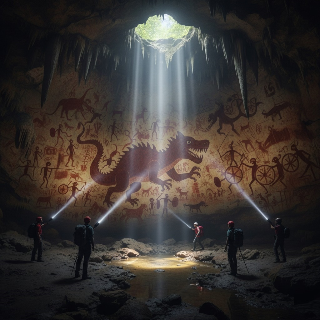 “This is unprecedented,” Alistair breathed, his gaze fixed on the mural. “The detail… the narrative complexity. And this creature… it’s not known from any fossil record of the Upper Paleolithic.”