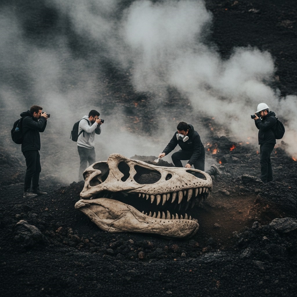 “Magnificent,” whispered Dr. Lena Petrova, the team’s lead paleontologist, her voice muffled by her respirator. She knelt, a picture of focused intensity, meticulously brushing away millennia of volcanic ash and grit from the colossal skull. It was immense, easily dwarfing a small car, its bone-colored structure stark against the obsidian-black volcanic rock. Jagged, dagger-like teeth curved inwards, hinting at a predator of unimaginable scale. Wisps of steam, naturally escaping from Erebus’s inner workings, coiled around them like ghostly specters, lending an ethereal, almost sacred quality to the site.