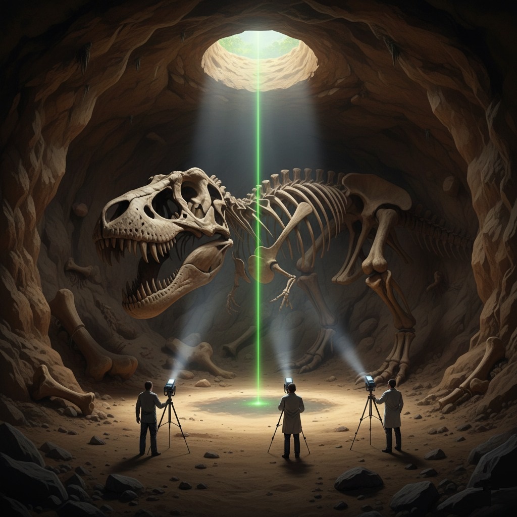 Quickly, his two most trusted colleagues, Dr. Lena Petrova, a brilliant stratigrapher from St. Petersburg, and Jian Li, a meticulous topographical surveyor, descended after him. They moved with practiced efficiency, setting up their tripods. Spotlights, powered by newly developed portable generators, flared to life, casting dramatic shadows and revealing the intricate details of the bone structure. Jian meticulously calibrated a cutting-edge (for the 1920s) green laser, aiming it precisely from the sunlit opening to the heart of the skeleton. This beam, a nascent technology, would allow them to create precise 3D measurements of the fossil in situ, revolutionizing their documentation.