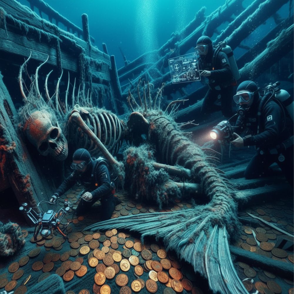 Aris often found himself staring at the haunting image of the skeleton on the main screen of the Triton III. The mermaid, if that was indeed what she was, seemed to be in repose, her skeletal hand resting amidst the gold as if guarding a final, eternal treasure. Was she a queen? A guardian? A survivor of a civilization swallowed by the rising seas of an ancient world?