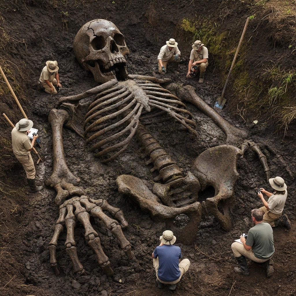 He scrambled towards the excavation pit, the thick, dark mud sucking at his boots. What he saw stopped him dead. Partially exposed from the viscous, primeval muck was not a fragmented bone, nor a lost artifact, but a complete, undeniable skeleton – of impossible scale.