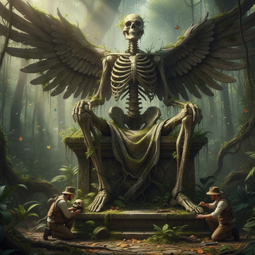 Weeks of arduous trekking and meticulous clearing of dense undergrowth had brought Thorne and his seasoned colleague, Dr. Lena Petrova, to this breathtaking sight. Before them sat a gigantic, moss-covered skeletal figure, carved from what appeared to be ancient limestone. Its immense, feathered wings, now cracked and softened by centuries of rain and growth, spread wide as if in eternal embrace of the earth. The skull, weathered but eerily intact, gazed upwards towards the dappled sunlight that pierced the emerald canopy, hinting at a reverence for the sky. It was undeniably a depiction of some deity, or perhaps a deified ruler, yet unlike any known iconography from the Classic Maya period.