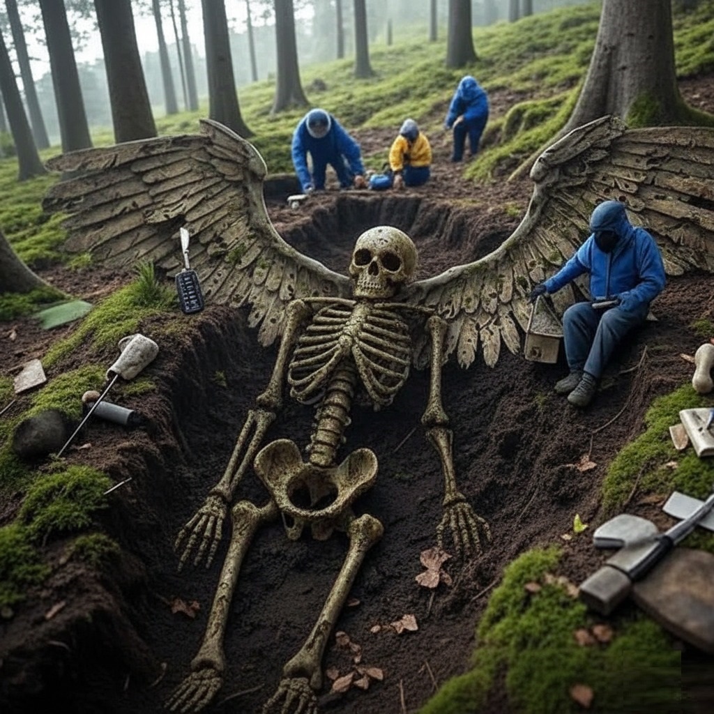 The excavation continued with renewed fervor. The team discovered not just the “Winged Enigma” but an entire context around it. Crude, yet surprisingly sophisticated, stone tools unlike any found in Europe were unearthed, some bearing the same intricate patterns as the wings. Organic samples, painstakingly extracted, hinted at an astonishing age, pushing the burial back to a period predating the established arrival of Homo sapiens in the region, perhaps even touching the late Neanderthal era or an unknown hominid species.