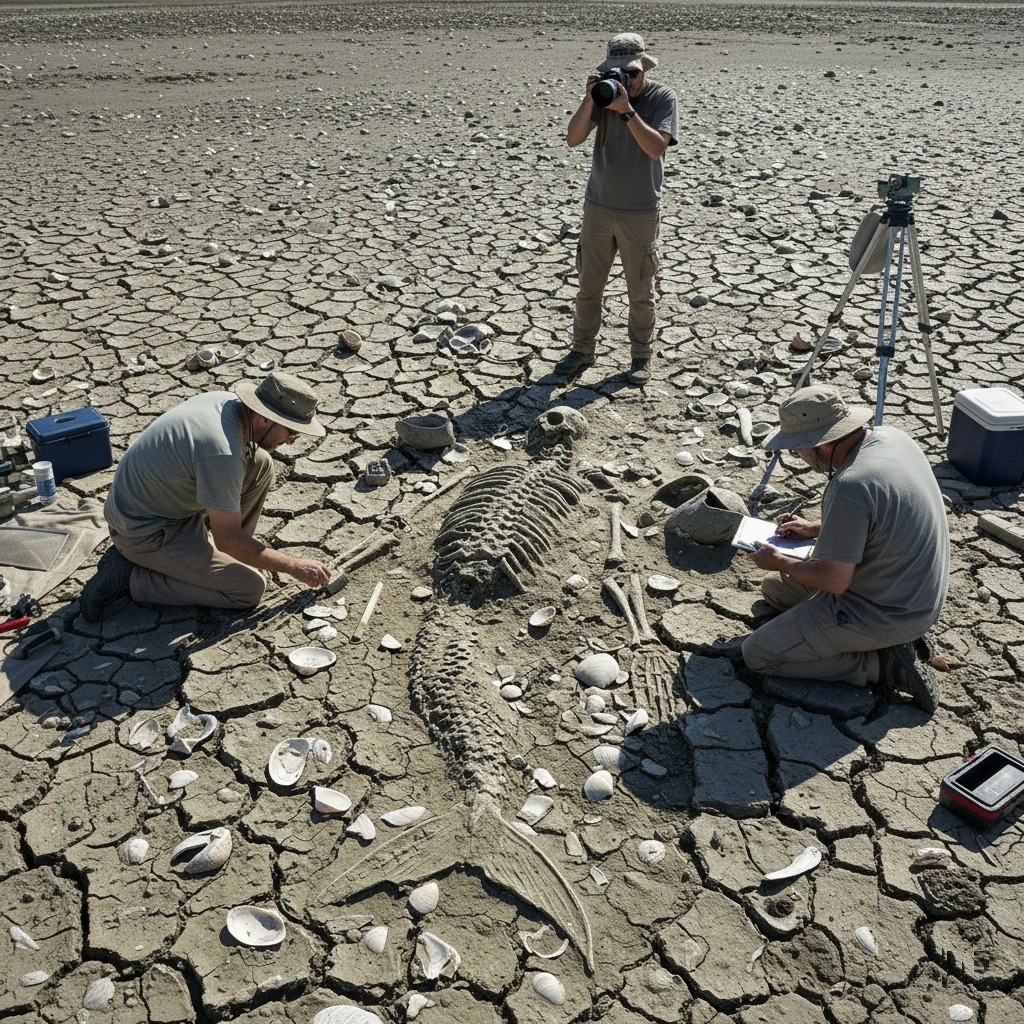 Anya hurried over, her boots crunching on the brittle, polygonal cracks of the ancient lakebed. Kai pointed to a raised, undulating form half-buried in the clay, its texture distinct from the surrounding soil. As they began to carefully clear away the layers of dust and salt, the impossible began to reveal itself.