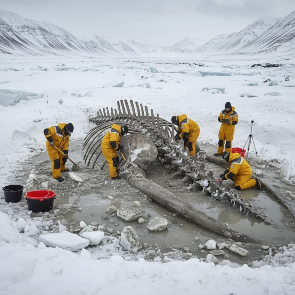 “Careful, Anya! Every bone tells a story,” Aris called out, his voice a surprising warmth against the frigid air. Anya Petrova, a bright young paleontologist from the University of Oslo, meticulously brushed away layers of ancient mud and ice. They were surrounded by the monumental task of excavating a colossal whale skeleton, its massive ribs and vertebrae slowly emerging from a muddy, icy trench that had held it captive for millennia.