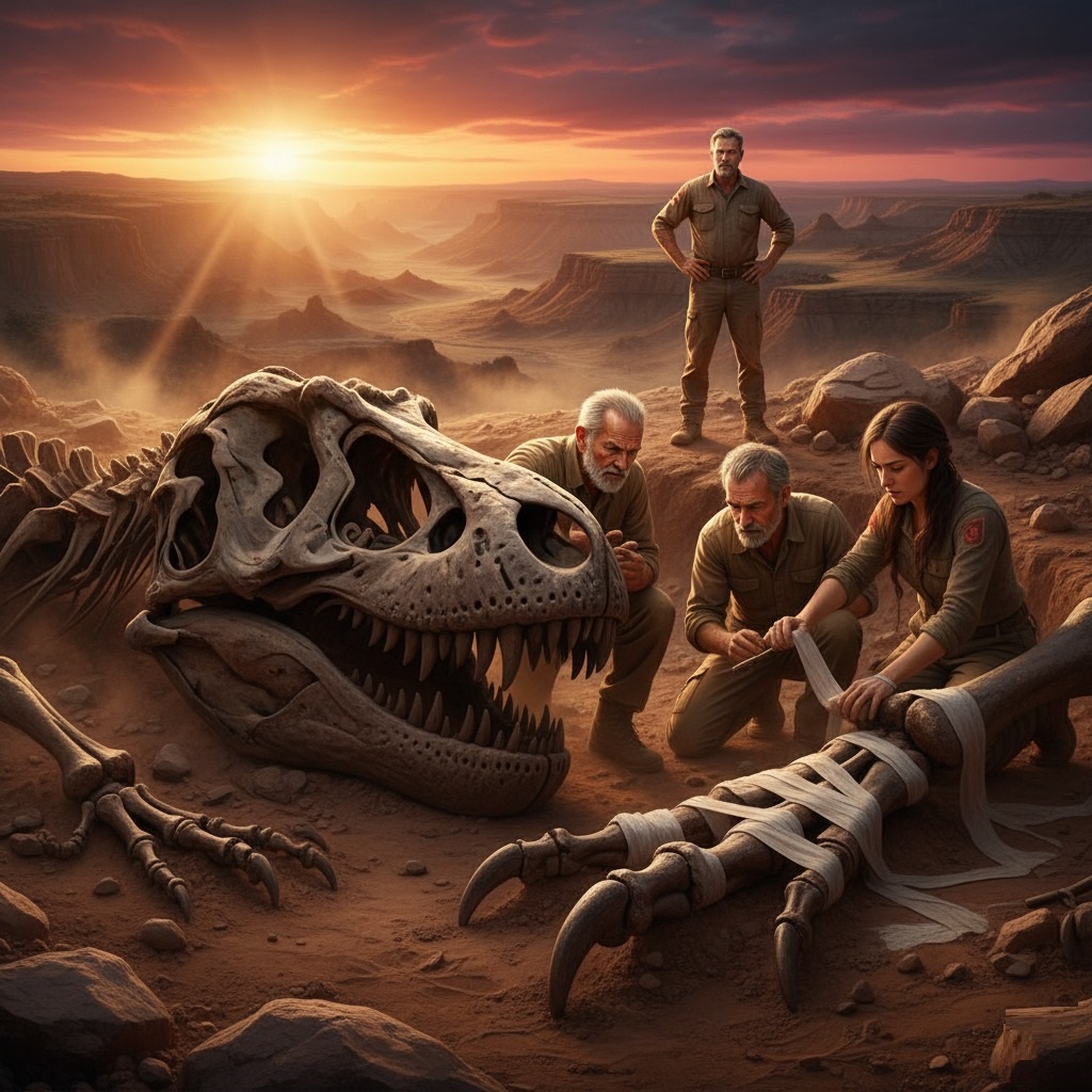 One evening, as the sun dipped below the jagged horizons, painting the sky in fiery oranges and purples, Aris stood back, watching his team. Elara was carefully encasing a foot claw in plaster, while old Mateo, the seasoned veteran of countless digs, was gently cleaning the eye socket of the colossal skull. The dinosaur lay before them, a majestic silhouette against the twilight—a silent, stony testament to a world lost to time, now resurrected, bone by bone, by the tireless hands of those who dared to listen to the Earth’s oldest whispers.