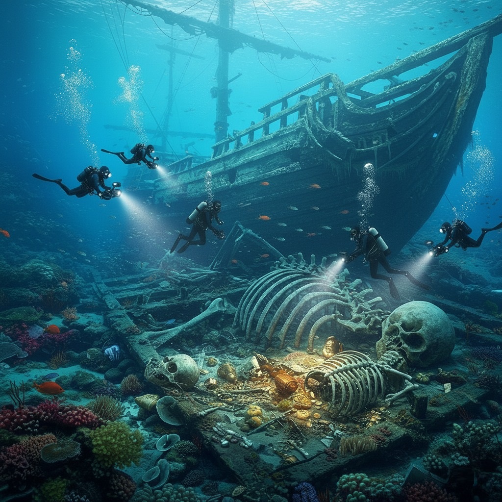 As they descended, the light filtered through the cerulean depths, illuminating a ghostly silhouette. There it was: a massive wooden hulk, half-buried in the sandy seabed, its timbers groaning under centuries of pressure and marine growth. This was no ordinary wreck. Its size suggested a grand vessel, perhaps a merchant ship or even a war galley, lost to a sudden storm or a forgotten battle.