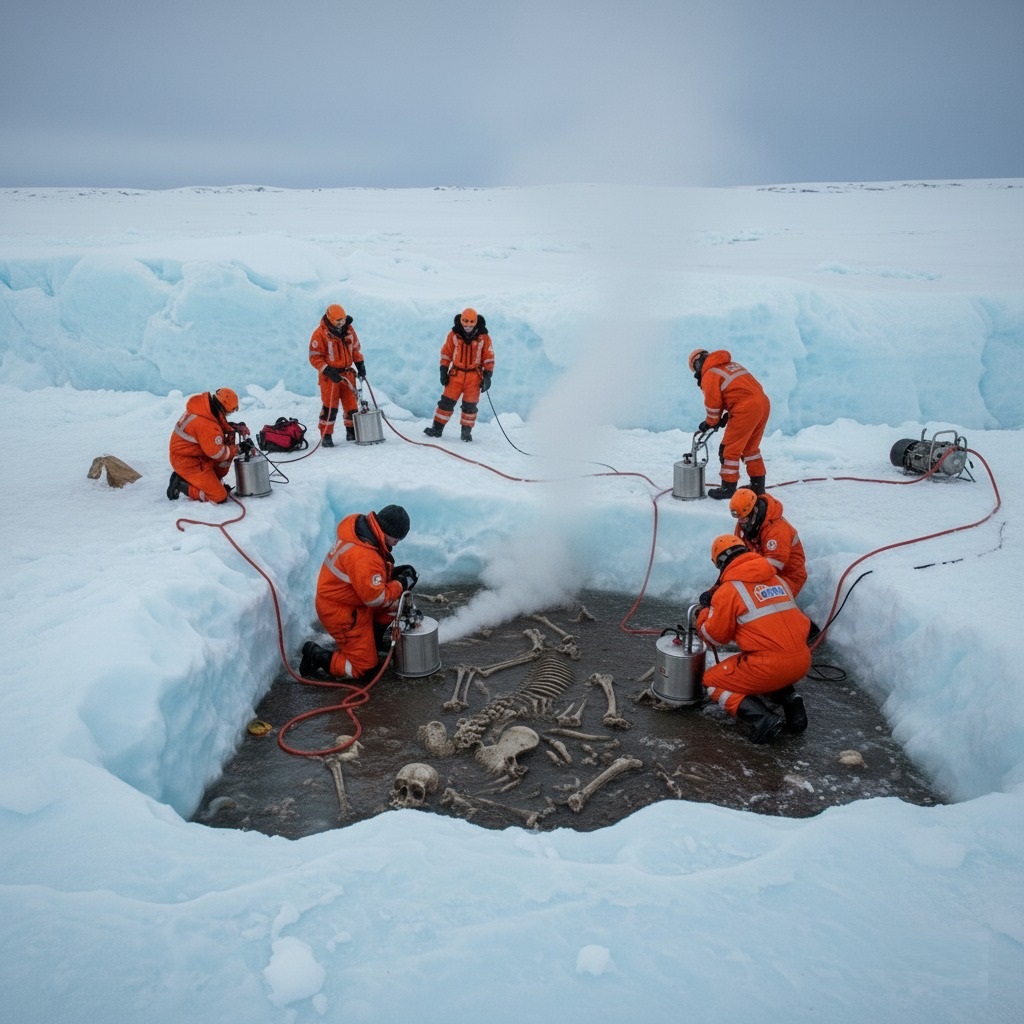 By 2009, with significant funding and a growing international interest, the scale of the operation had transformed. Using carefully managed steam drills – a delicate balance between thawing the ground and preserving fragile organic material – they began to uncover the full extent of the discovery. The first articulated skeleton emerged, lying frozen as if in slumber for centuries. The skeletal remains, later identified through radiocarbon dating to belong to the Thule people, ancestors of today’s Inuit, told a silent story of resilience and adaptation in one of the world’s harshest environments.