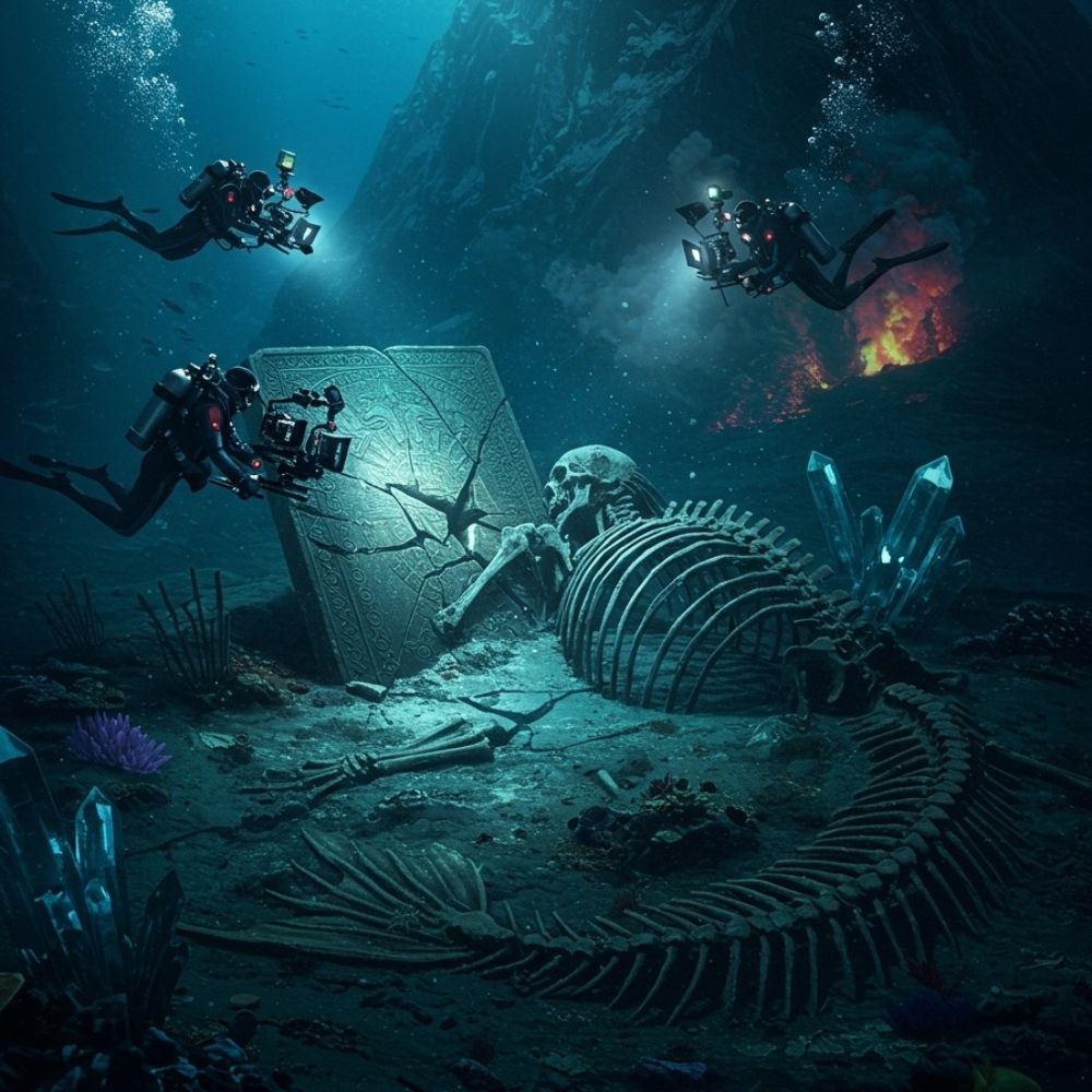 But Aris was mesmerized. The tablet, the skeleton, the erupting volcano—they weren’t just objects. They were chapters in a story, an epic of a civilization that had thrived, and perhaps perished, in the crushing depths. He reached out, his gloved hand hovering over a symbol on the tablet. Could it be a warning? A lament? Or the key to understanding a species that had called the deep its home, long before humanity dared to dream of the stars?