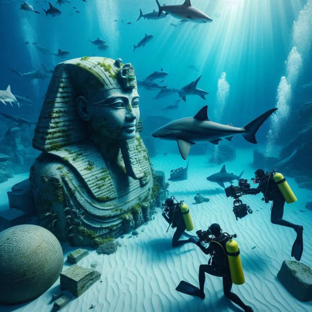 The expedition took a dramatic turn captured on the team’s 8K underwater cameras. As the divers approached the artifact to take initial measurements, a school of bull sharks and reef sharks descended upon the site. In a scene described as “otherworldly,” the sharks did not attack but circled the stone giant in a hypnotic formation, acting as living sentinels to the ancient king.