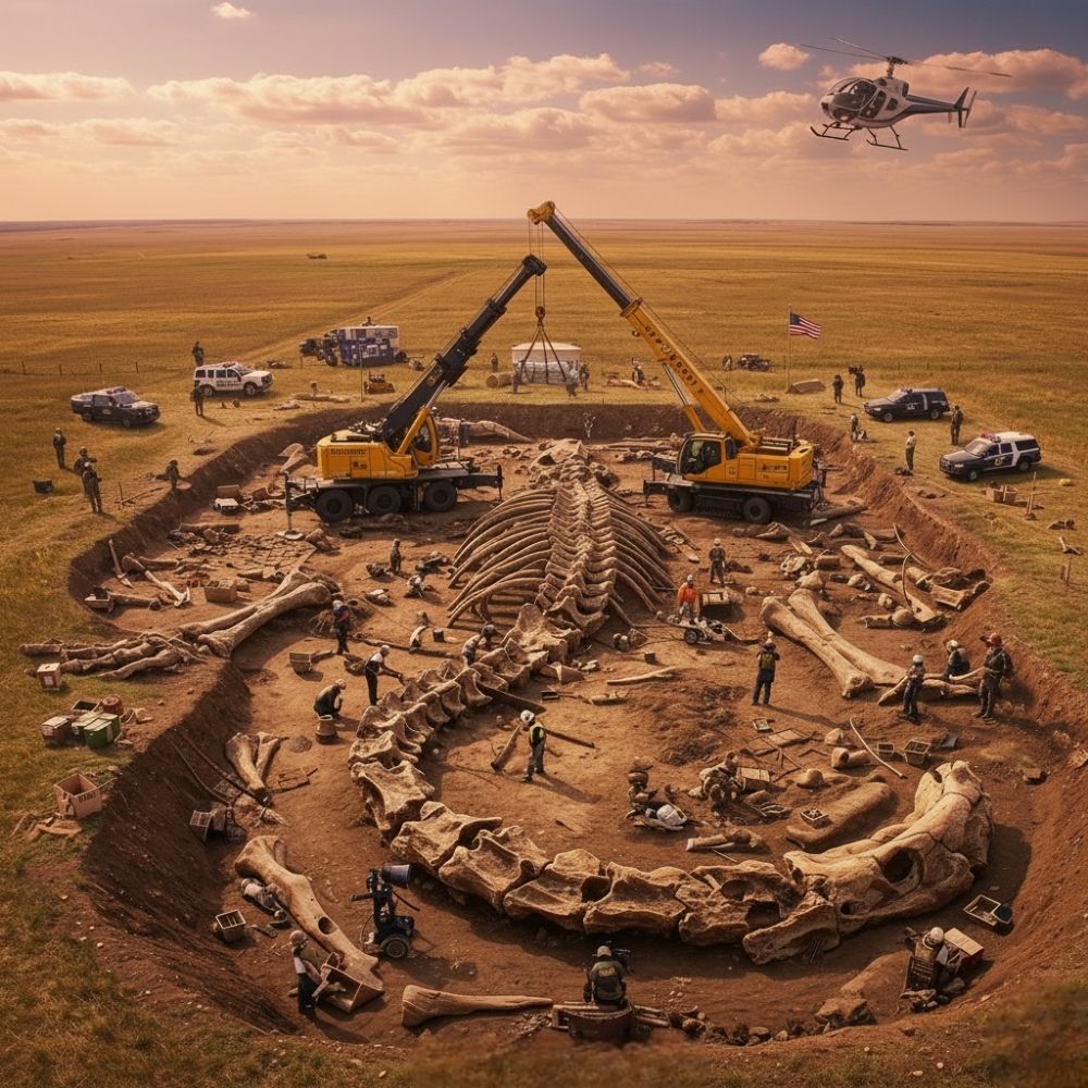 The Montana sky, painted in hues of apricot and rose by the setting sun, cast long, dramatic shadows across the vast expanse of the Hell Creek Formation. Below, a scene of meticulously organized chaos unfolded within a colossal excavation pit. For months, this unassuming patch of badlands, previously known only to cattle and coyotes, had become the epicenter of the paleontological world.